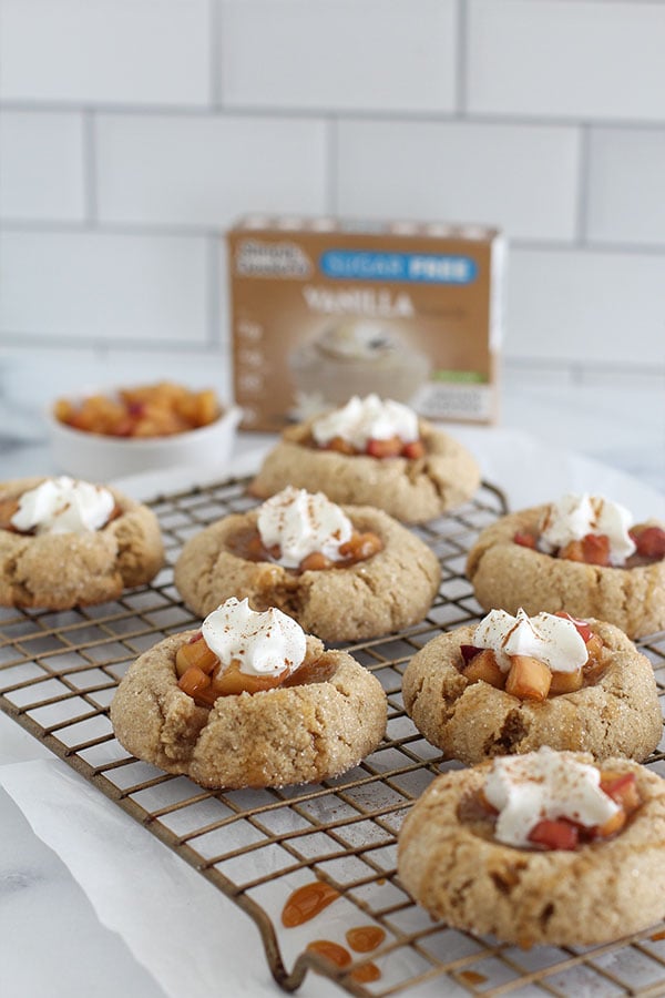 Use your thumb or a spoon to create a well in the center of each cookie and spoon in the cooled apple mixture.