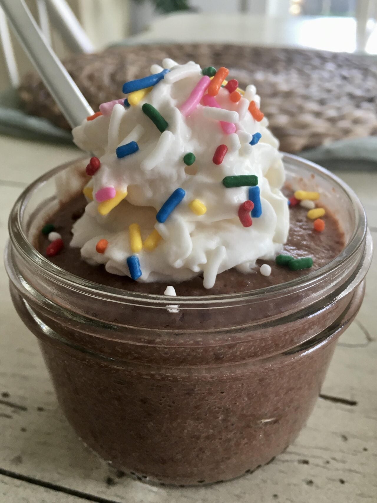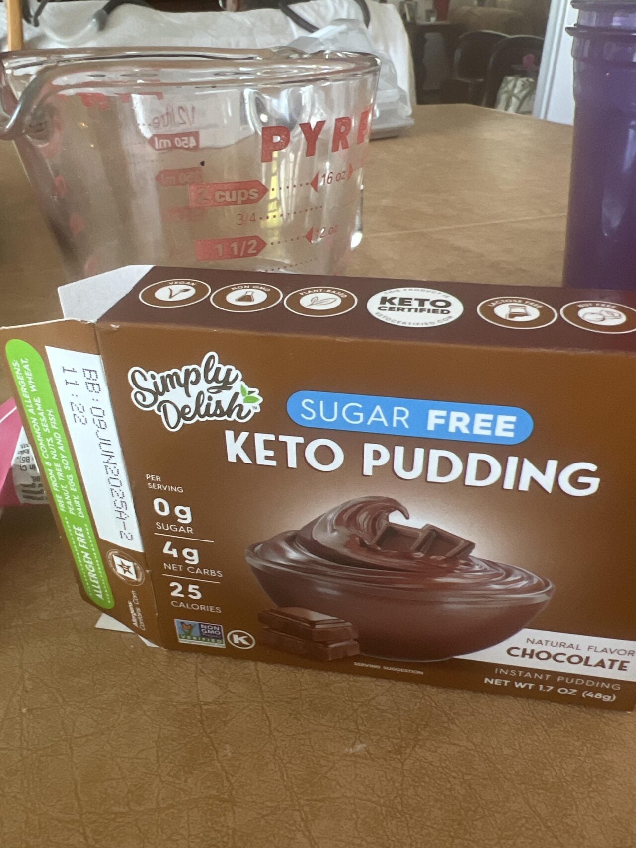 This chocolate pudding tastes very much like the brand name box mix I grew up on. It’s awesome that I can still enjoy chocolate pudding with less sugar and no funny aftertaste. It has a surprisingly light and airy consistency once prepared. I used 2% Lactaid milk.